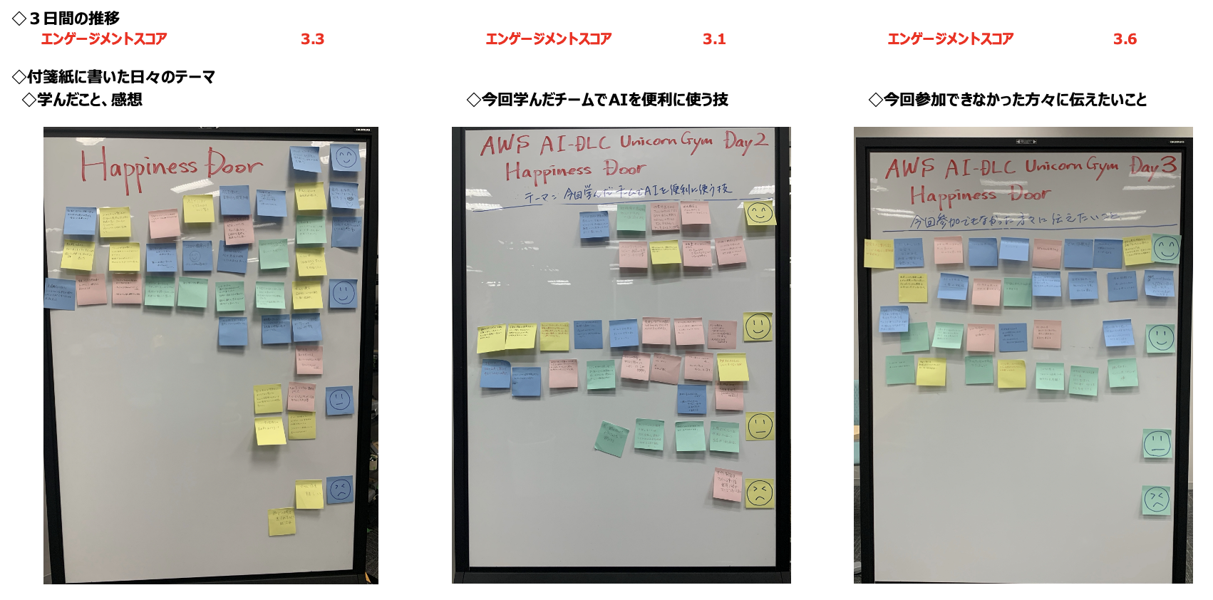 3 日間という短い期間でしたが、参加者が AI-DLC の本質的な価値を実感できたことが数字に表れています。