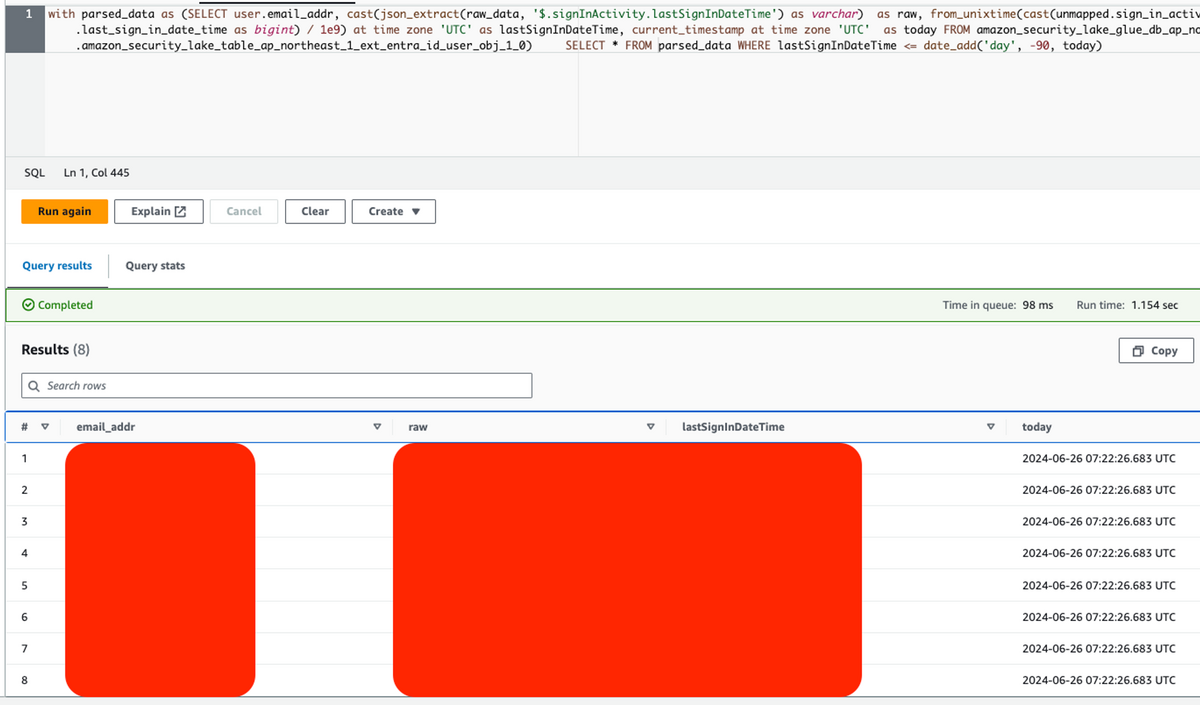 これらの分析は Athena または日次の Lambda から実行し、レポートやアラートを生成しています。このような可視化により、アカセス権限の見直しや多要素認証の強制適用などの適切なセキュリティ対策を講じることができます。