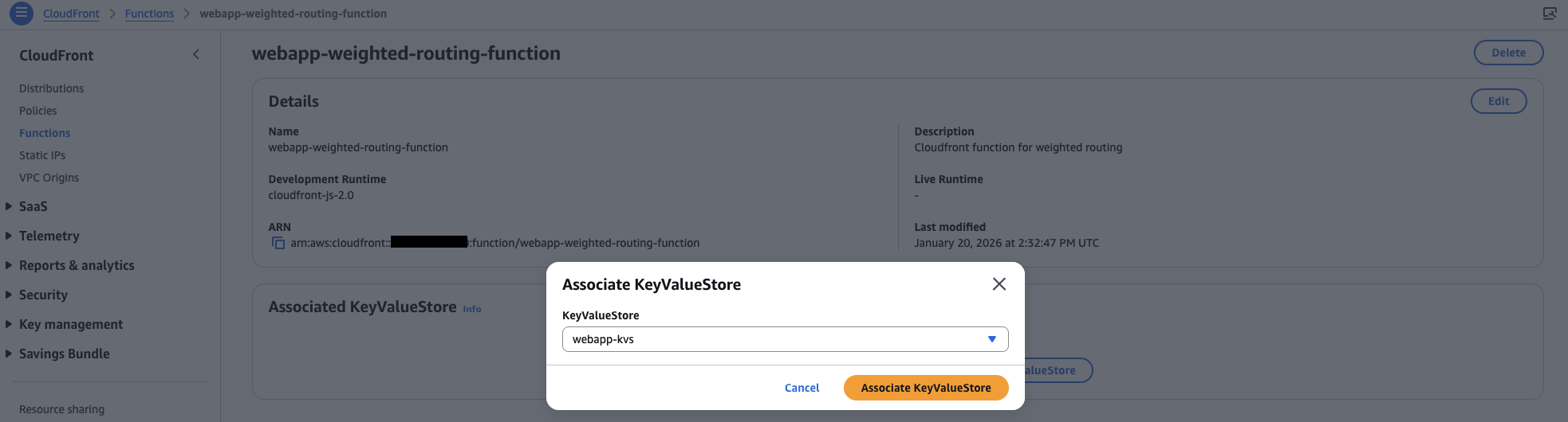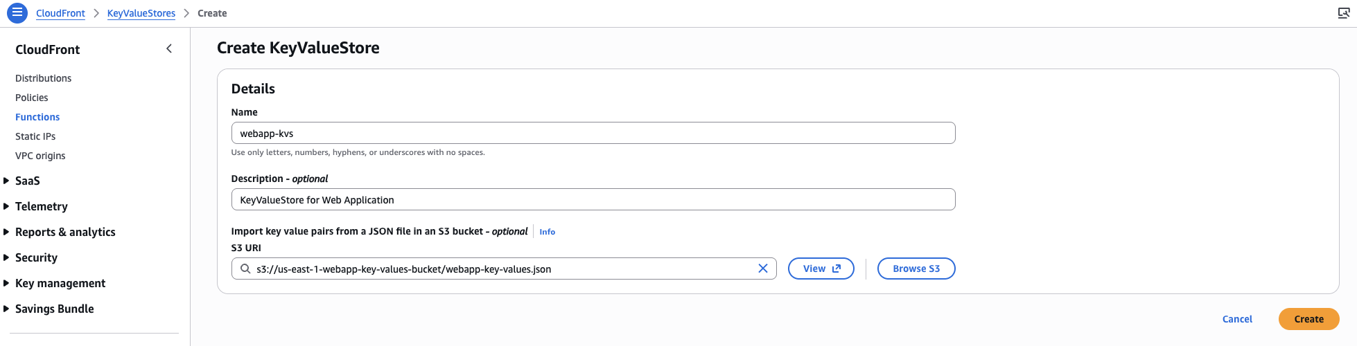 ステップ 2:CloudFront KeyValueStore の設定