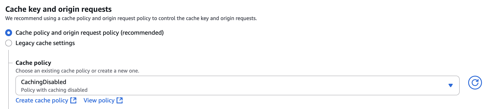 図20. キャッシュポリシーで [CachingDisabled] を選択