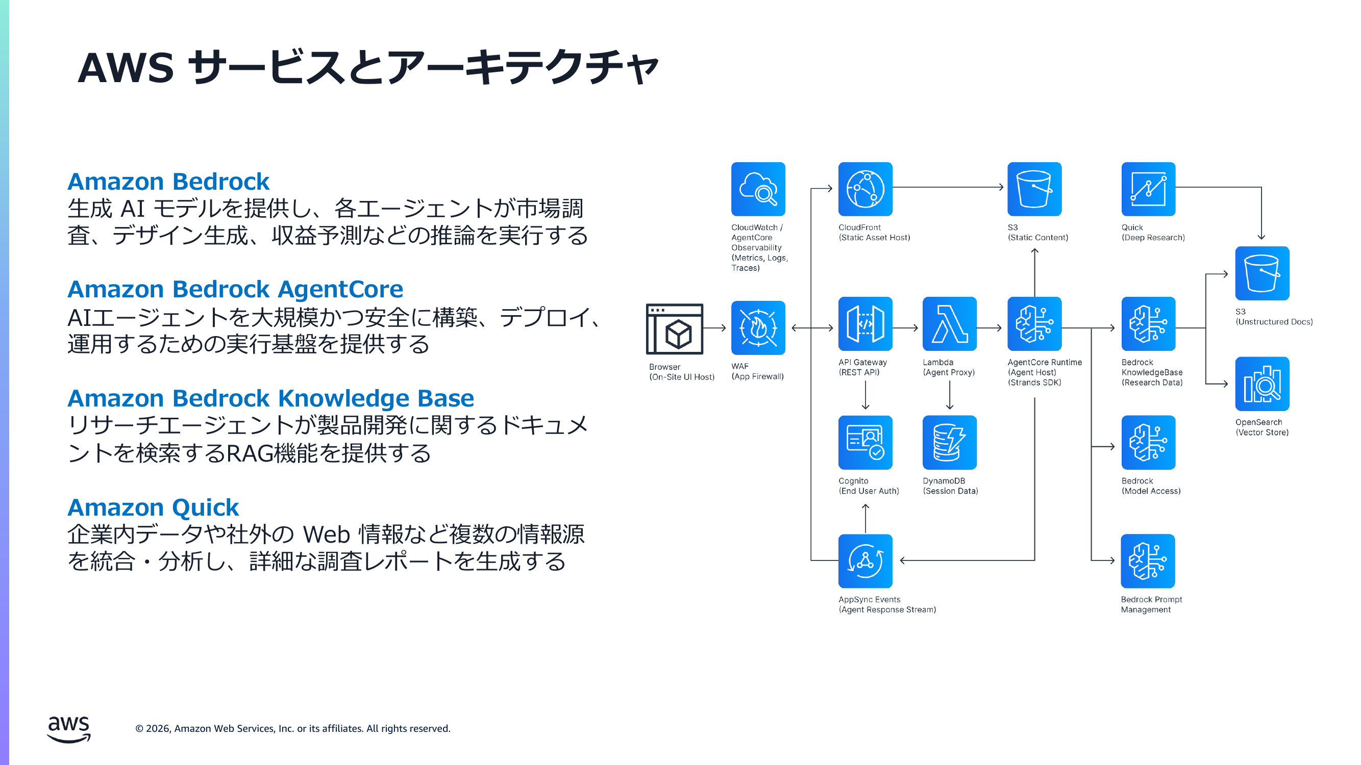 ご来場いただけなかった皆さまも、ぜひ AWS の担当者までお気軽にご相談ください。皆さまの現場で AI エージェントが動き始めることを楽しみにしています。