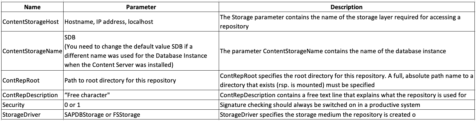 - Repository:コンテンツリポジトリの一意の名前を入力します(例:Z_STORAGE_GATEWAY)
