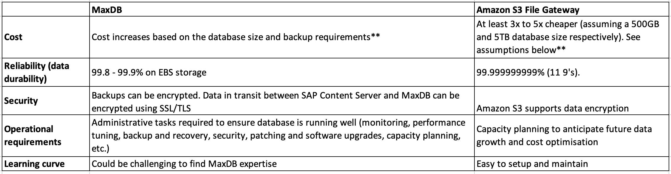 表2:MaxDB vs. Amazon S3 File Gatewayの比較