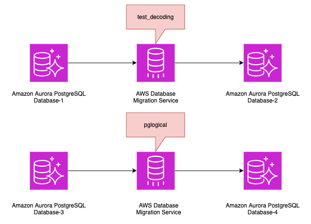 Amazon Aurora PostgreSQL での AWS DMS を使用したデータ移行における test_decoding プラグインと pglogical プラグインの比較