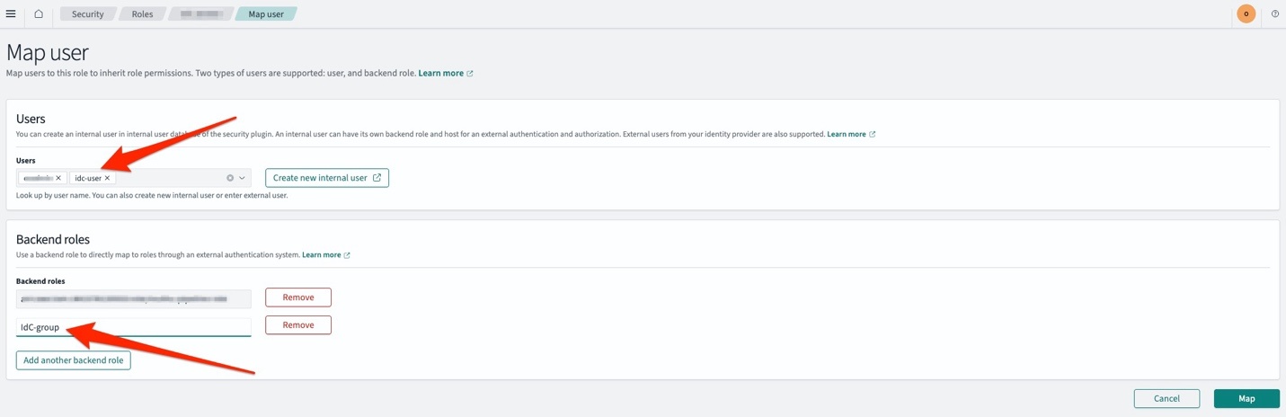 OpenSearch Dashboards を使用してロールをマッピングするには