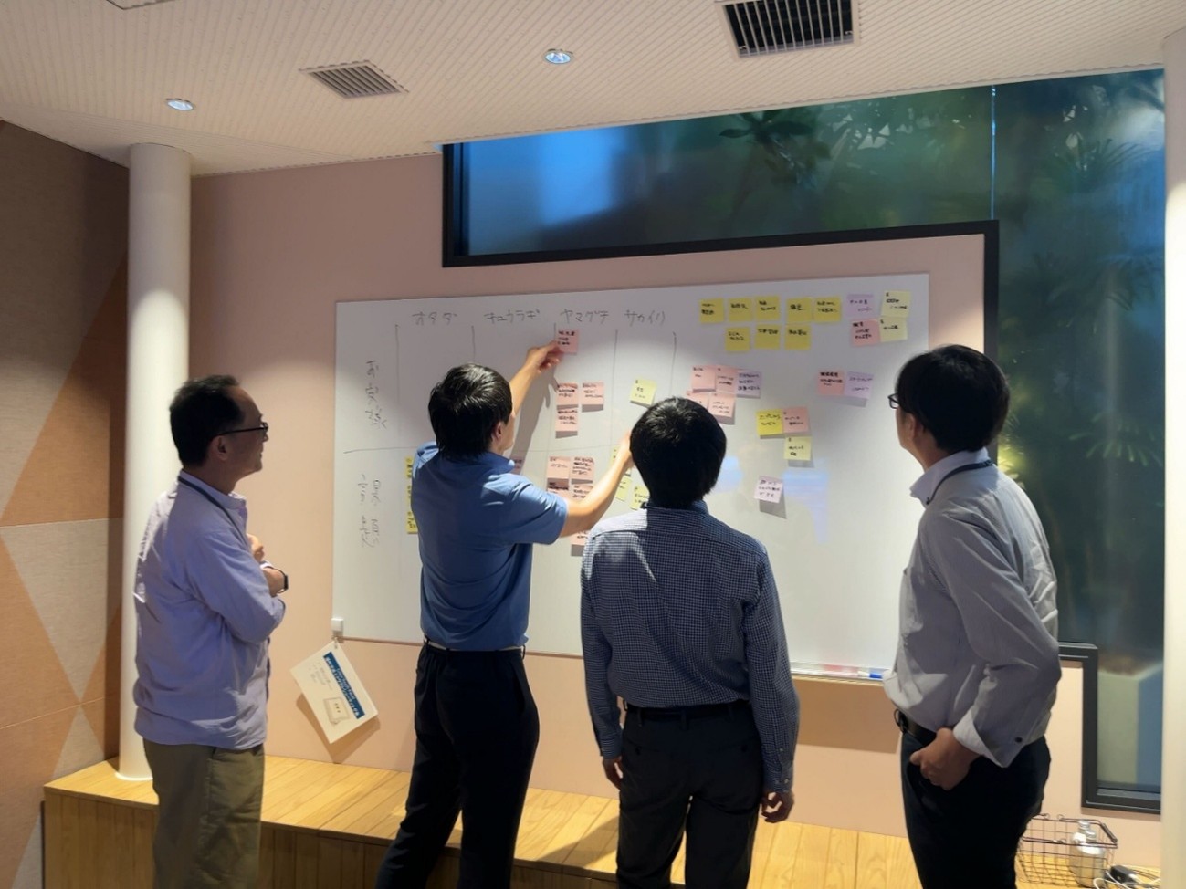 参加者は2つのチームに分かれ、対面とリモート参加のハイブリッド形式で実施。各チームには営業・開発両部門のメンバーを配置し、多様な視点からの議論を促進しました。