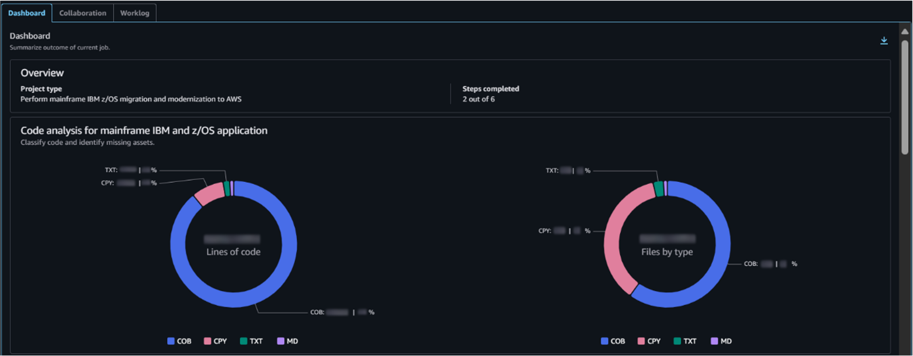 図 4. AWS Transform for mainframe の Dashboard 画面