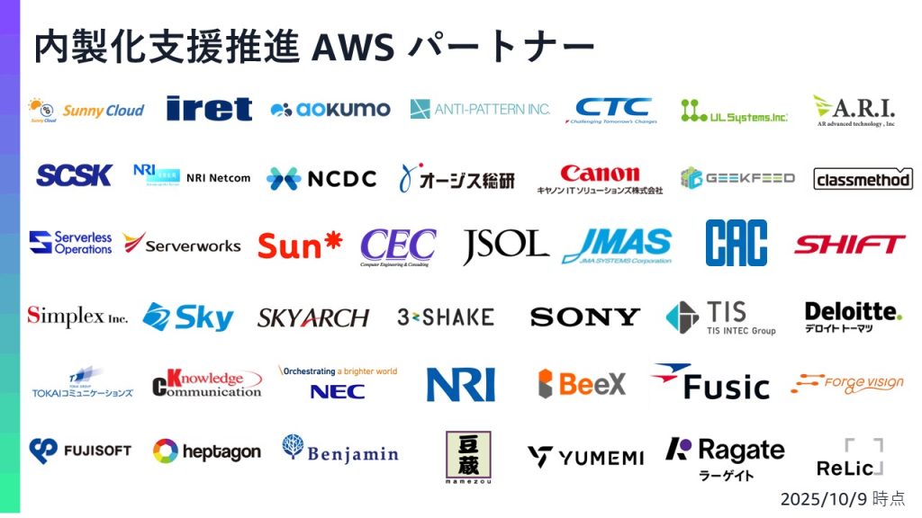 今回の記事では、2025 年 10 月に新たに加わった「内製化支援推進 AWS パートナー」及び「内製化における生成 AI 活用支援サービスオファリング」を紹介します。また、内製化における AI 駆動開発支援についても取り上げます。