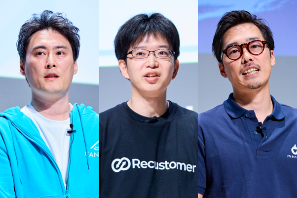 株式会社カナリー 中山 太雅 氏(写真左)、Recustomer株式会社 眞鍋 秀悟 氏(写真中央)、株式会社mento 松山 勇輝 氏(写真右)