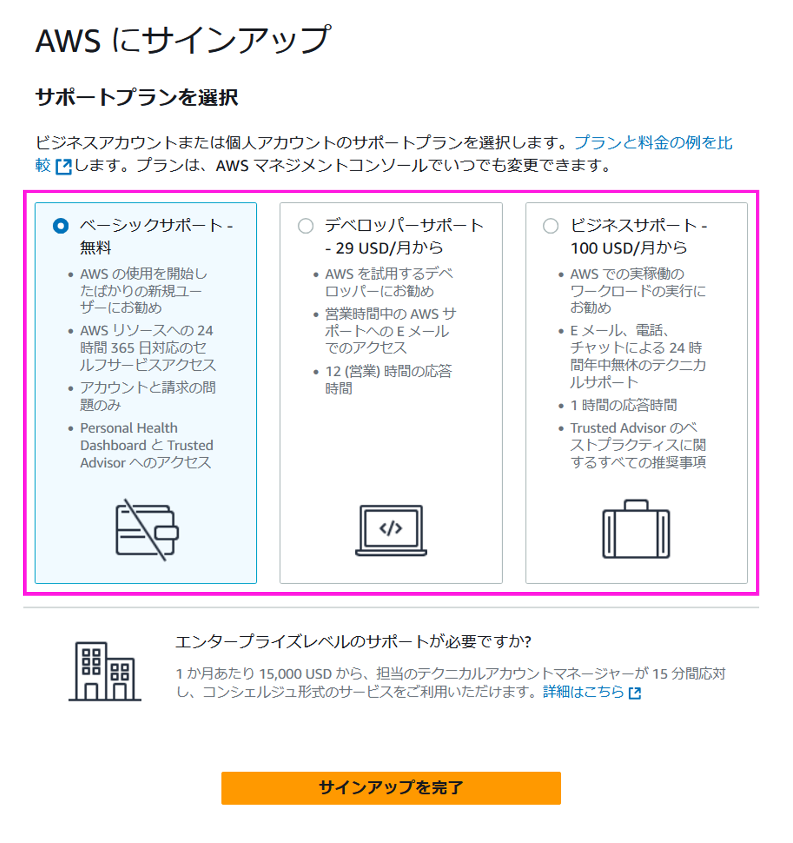 おめでとうございます! サインアップ (AWS アカウントの作成) が完了しました