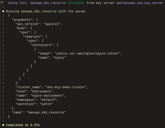 그림 10: Amazon Q CLI가 쿠버네티스 리소스를 업데이트하기 위해 EKS MCP 도구를 호출하는 모습