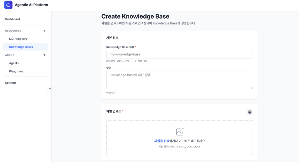 Agent에게 도메인 지식을 제공하는 Knowledge Base를 관리합니다.