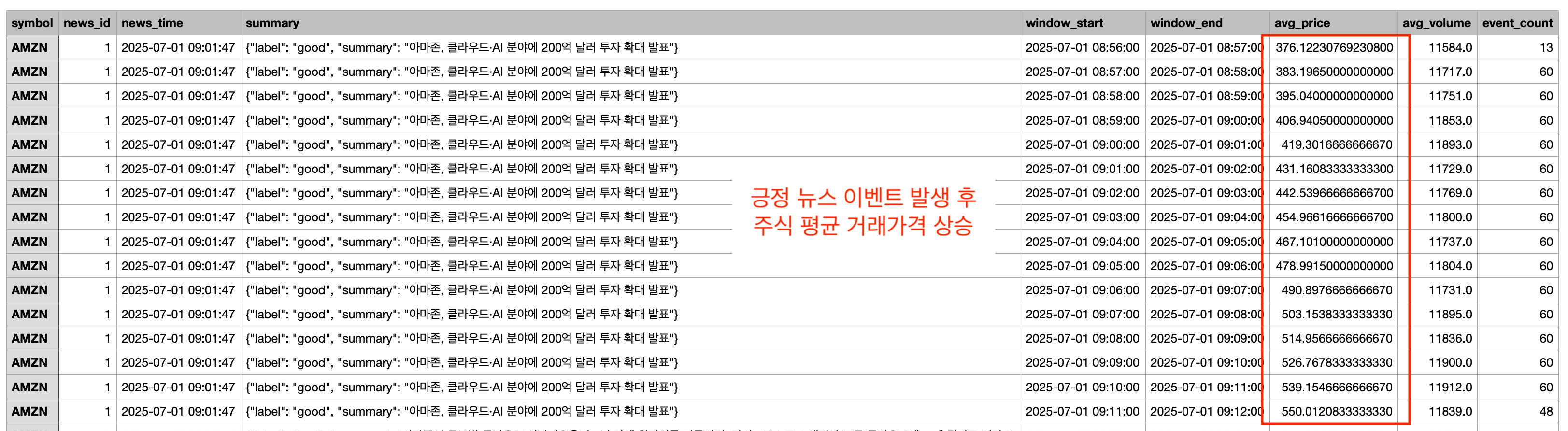 - interval join 패턴으로, 뉴스가 주식에 미치는 영향을 시간 범위로 제한