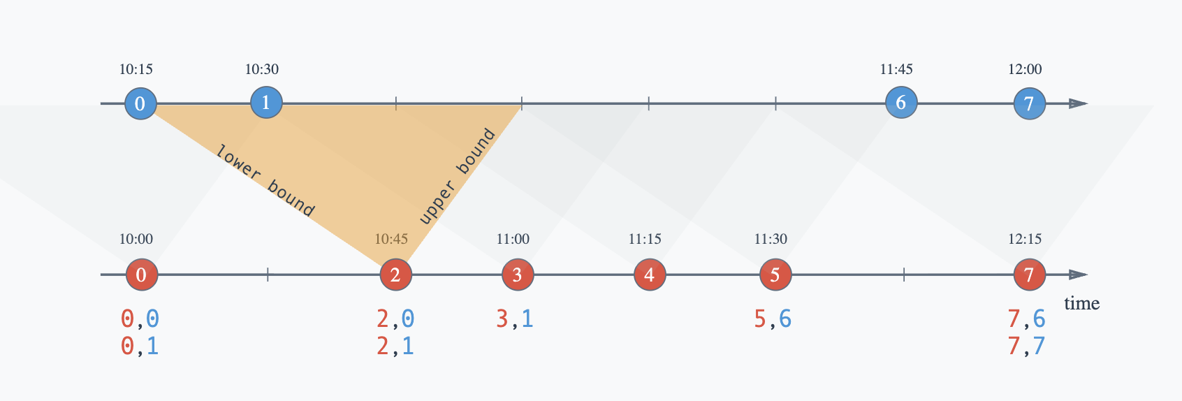 - Join 작업 예시: Red Event(news event)가 발생했을 때, Blue Event(stock event)가 다음 시간 범위 내에 있으면 Red Event(news event)와 조인하세요