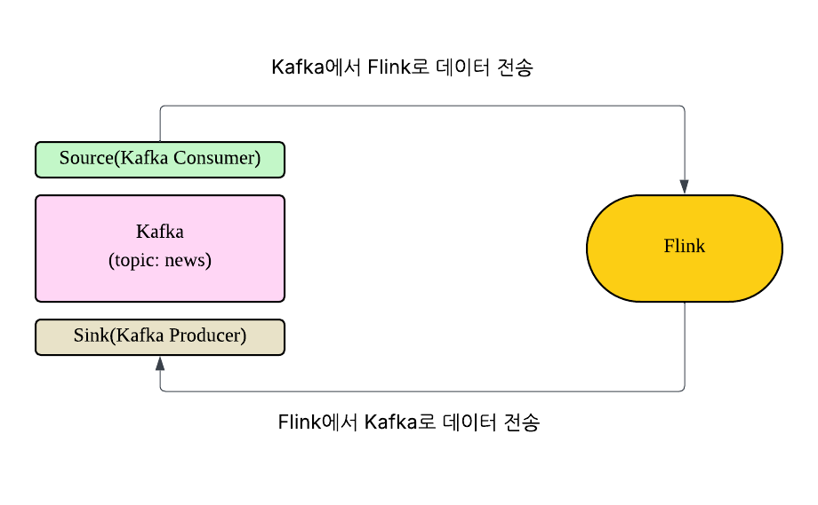 Flink 프로세서 안에서 Kafka Source 와 Sink의 흐름