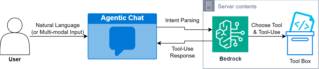 Bedrock Agent가 활용할 기능을 Tool Box로 사전 정의하여 Agentic Chat 워크플로우를 구축했습니다.
