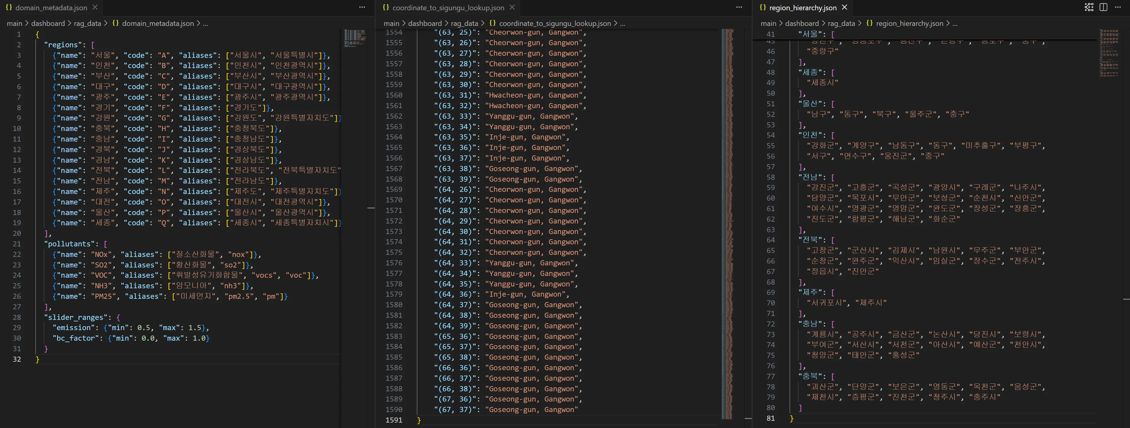 지리적 특성 이해(좌표 값→ 지역 이름 매핑 등) 를 위한 대용량의 메타데이터를 구축함에 있어, Amazon Q Developer에게 데이터 패턴에 대한 정보를 제공한 후 메타데이터 구성을 요청하였을 때, 수천 라인의 정합성 높은 JSON 데이터를 단 몇 분 만에 확보했습니다. 이를 통해 Amazon Bedrock Agent는 데이터에 근거한 정확한 답변을 제시할 수 있게 되었습니다.