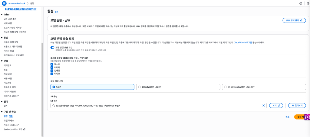 2. Bedrock Invocation Logging 활성화(상세 로깅)
