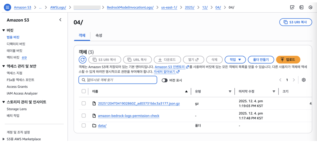 Figure 4. Bedrock 로그가 S3 에 저장된 모습