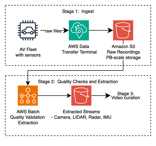 AI 처리에 앞서, 원시 녹화 데이터는 품질 게이트(quality gate)를 통과하고 개별 센서 스트림으로 분리(unpacking)되어야 합니다.