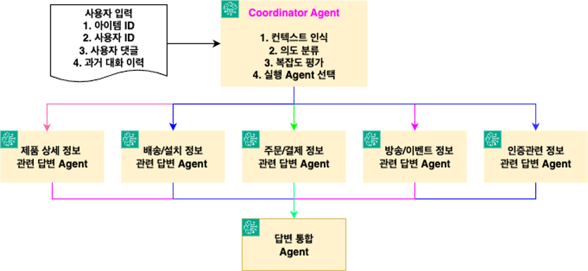 앞서 살펴본 데이터 준비 과정을 통해 구조화된 제품 정보가 준비되었다면, 이제 실제로 고객의 질문이 들어왔을 때 AI 에이전트들이 어떻게 협업하여 실시간으로 지능형 응답을 생성하는지 살펴보겠습니다.