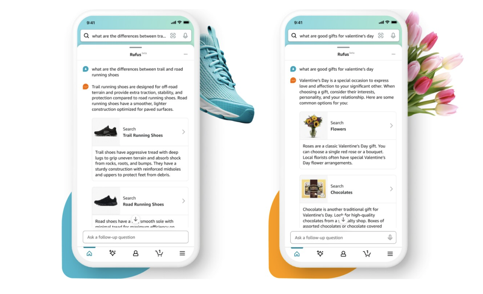 생성형 AI가 공개된 이후로 쇼핑 경험 전환에 사용하려는 시도가 다양하게 있었습니다. 이제 단순히 상품을 검색하고 구매하는 경험을 넘어 탐색형 쇼핑으로 나아가는 과도기라고 할 수 있습니다. AI 검색을 지향하는 Perplexity에서 2024년 11월에 쇼핑 어시스턴트 기능을 출시하기도 했으며 Amazon.com에서는 Rufus를 출시했습니다. Amazon Rufus는 생성형 AI 기반 쇼핑 어시스턴트로, 고객이 상품을 검색하고, 비교하고, 추천을 받고, 구매 결정을 내리는 데 도움을 주는 솔루션입니다.