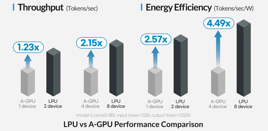 그림 1. LPU와 GPU의 LLM 추론 성능 비교