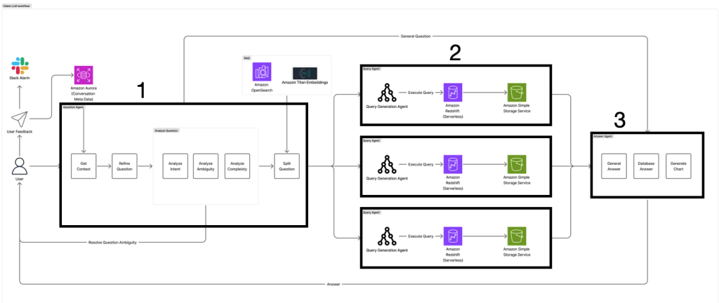 이러한 평가를 바탕으로 Claude 3.7 Sonnet은 복잡한 SQL 쿼리 생성과 비즈니스 로직 처리, RAG 컨텍스트의 효과적 활용을 담당합니다. 특히 한국어 특유의 모호한 표현 해석과 Highcharts JSON 포맷 차트 설정 생성에서 뛰어난 성능을 보입니다. Claude 3.5 Haiku는 단순하고 명확한 내부 보조 작업을 빠른 속도로 처리하여 전체 시스템의 효율성을 높입니다.