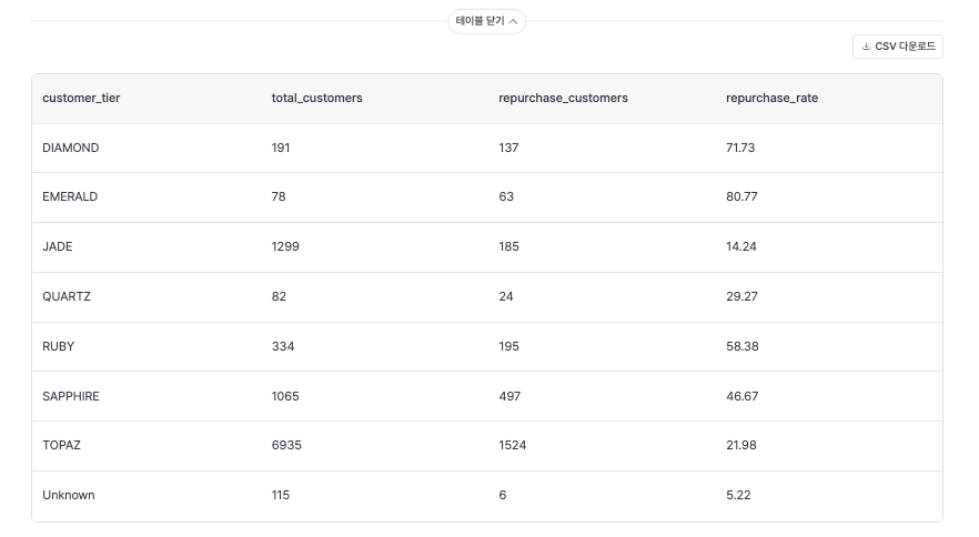 - 업무 효율성 대폭 향상: 복잡한 엑셀 작업이나 분석가 요청 대기 시간 없이 즉시 분석 결과를 얻을 수 있게 되어 업무 속도가 크게 개선되었습니다.