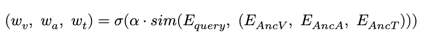 첫째로 Routing Anchor입니다. 각 모달리티를 잘 설명하는 대표 텍스트(앵커)를 미리 정의하고, 인풋 쿼리가 어떤 앵커와 더 유사한지 측정하여 가중치를 결정합니다.