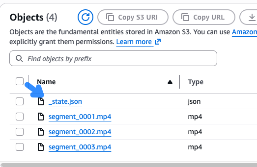 - 변환된 MP4 파일을 지정한 S3 경로에 세그먼트 단위로 저장하고, 상태 파일(_state.json)을 업데이트하여 다음 클리핑 위치를 기록합니다.