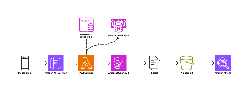- Amazon Simple Storage Service (Amazon S3) + Amazon Athena : Amazon DynamoDB의 투표 이력을 주기적으로 내보내어 전수 재집계를 수행하는 배치 분석 경로로 활용되었으며, Amazon ElastiCache for Redis 실시간 집계와의 최종 정합성을 확보하는 역할을 담당했습니다.