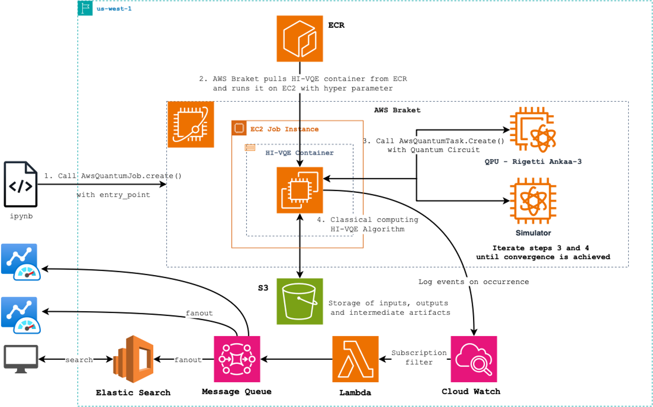 이러한 기술적 과제들을 해결하기 위해 큐노바컴퓨팅은 HI-VQE에 Amazon Braket의 서비스를 활용하는 어플리케이션을 개발하였습니다. AWS의 클라우드 인프라와 통합된 Amazon Braket은 안정적인 양자컴퓨팅 접근성, 효율적인 하이브리드 계산 환경, 체계적인 모니터링 시스템을 제공하여 HI-VQE의 실용적 활용을 가능하게 했습니다.