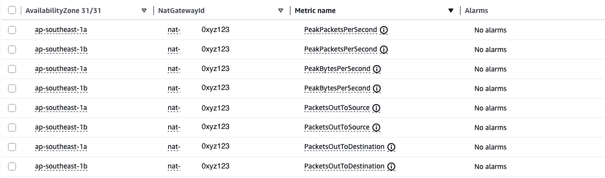 Zonal NAT Gateway 모니터링