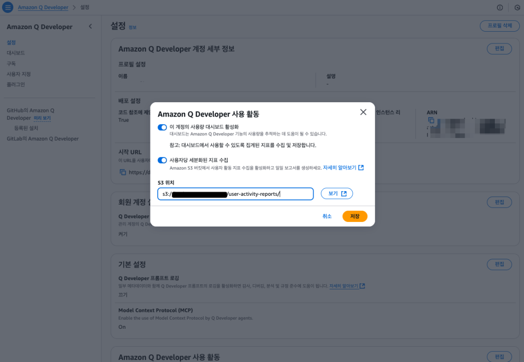 Figure 4. Q Developer의 사용량 대시보드 활성화 화면