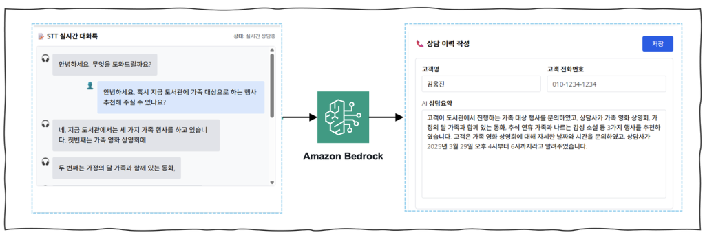 - 실시간 표시: Amazon API Gateway를 통해 브라우저 기반 상담원 화면에 실시간으로 전송