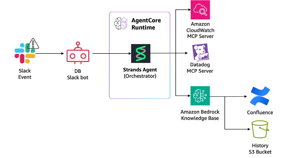 - Strands의 네이티브 MCP(Model Context Protocol) 지원을 통해 AWS API, DataDog, GitHub, ArgoCD, Harbor 등 다양한 외부 시스템과 통합했습니다.
