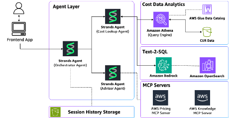 - Advisor Agent: 일반 비용 문의를 처리하고, AWS MCP 서버와 연동하여 최적화 가이드를 제공합니다.
