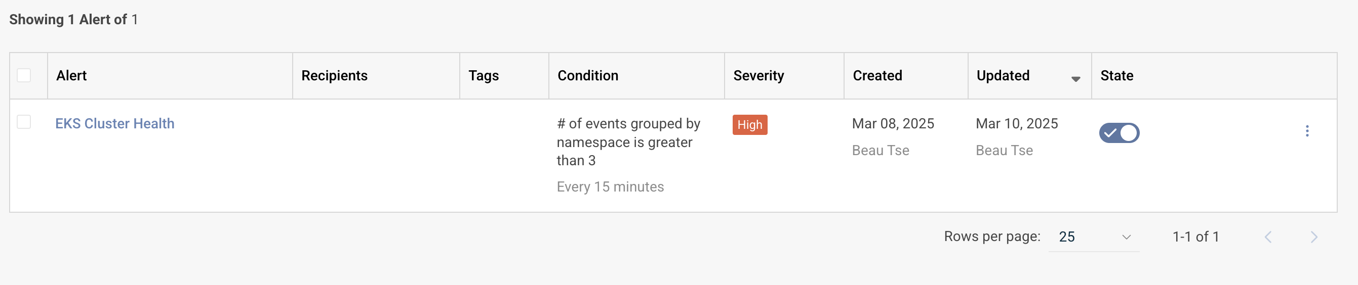 Now this alert will notify me when our specified query returns more than 3 results within a 15-minute window. As an SRE, this helps me proactively identify persistent issues in production workloads before they significantly impact our services. The query already utilizes Kubernetes metadata through kubernetes.namespace.name, kubernetes.object.kind, and kubernetes.object.reason to effectively filter and identify specific events in our production environments. The threshold of 3 occurrences helps eliminate false positives from transient failures. With this configured as a high-severity alert, I can be notified to quickly respond to potential service degradations, particularly those caused by repeated pod failures, health check issues, or crash-loop scenarios in our production systems.