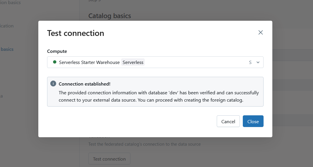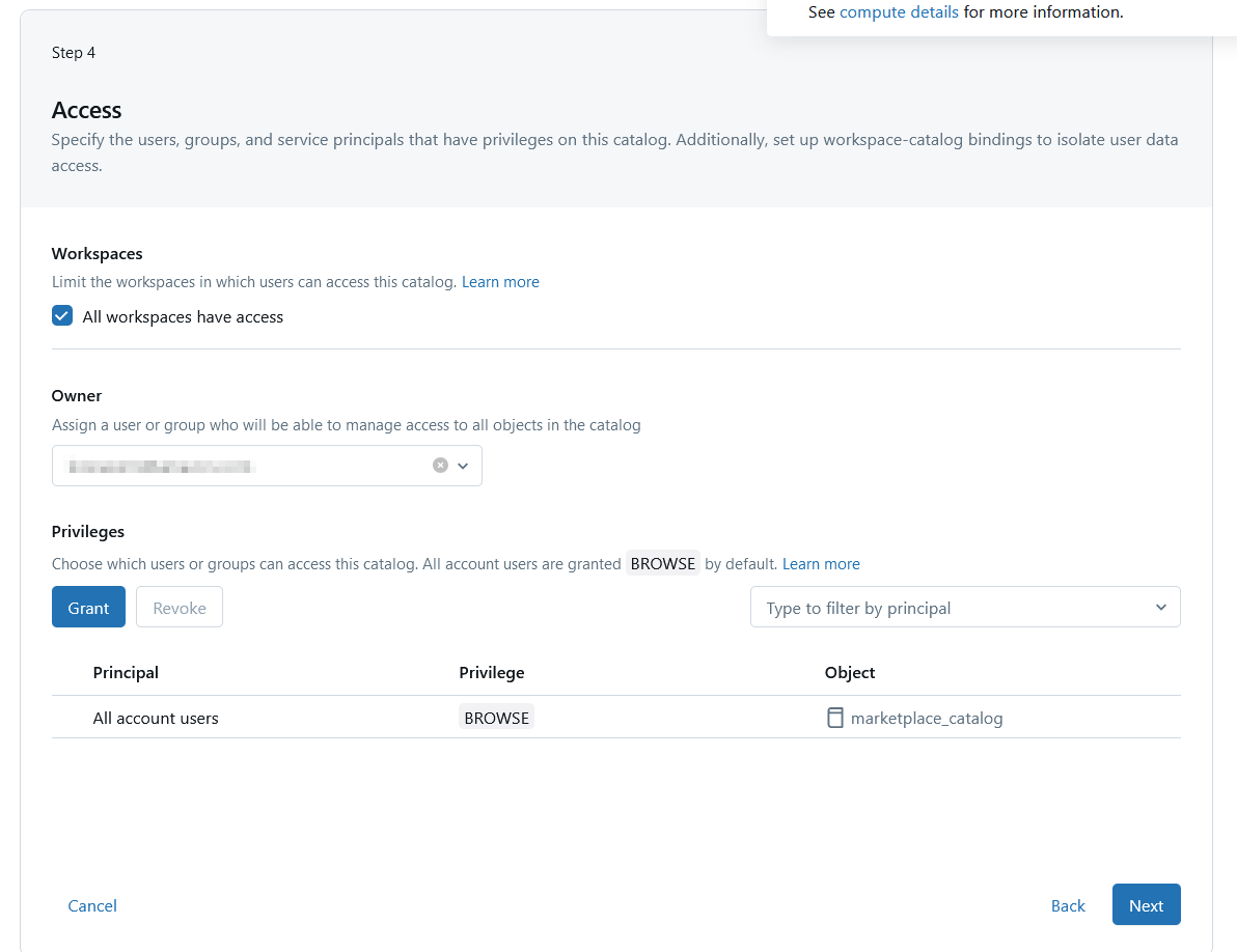 In the final configuration step, you can define which Databricks workspaces and users will have access to this external connection.