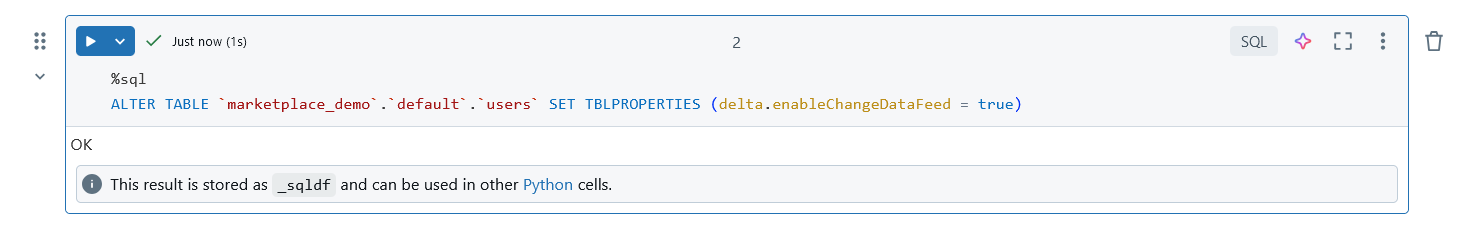 One of the requirements for creating a fully automated Vector Search Index is to enable change data feed on the table you are looking to vectorize. We can also do that by running a single SQL statement in a Notebook.