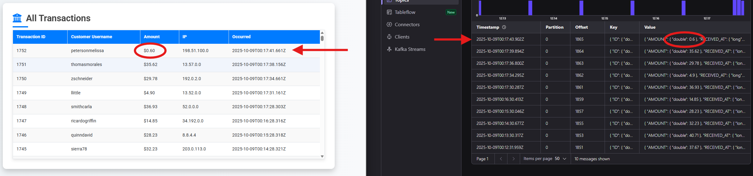 Data is streaming from our Oracle Database into Kafka, now let’s move to Step 3 and flag suspicious transactions!