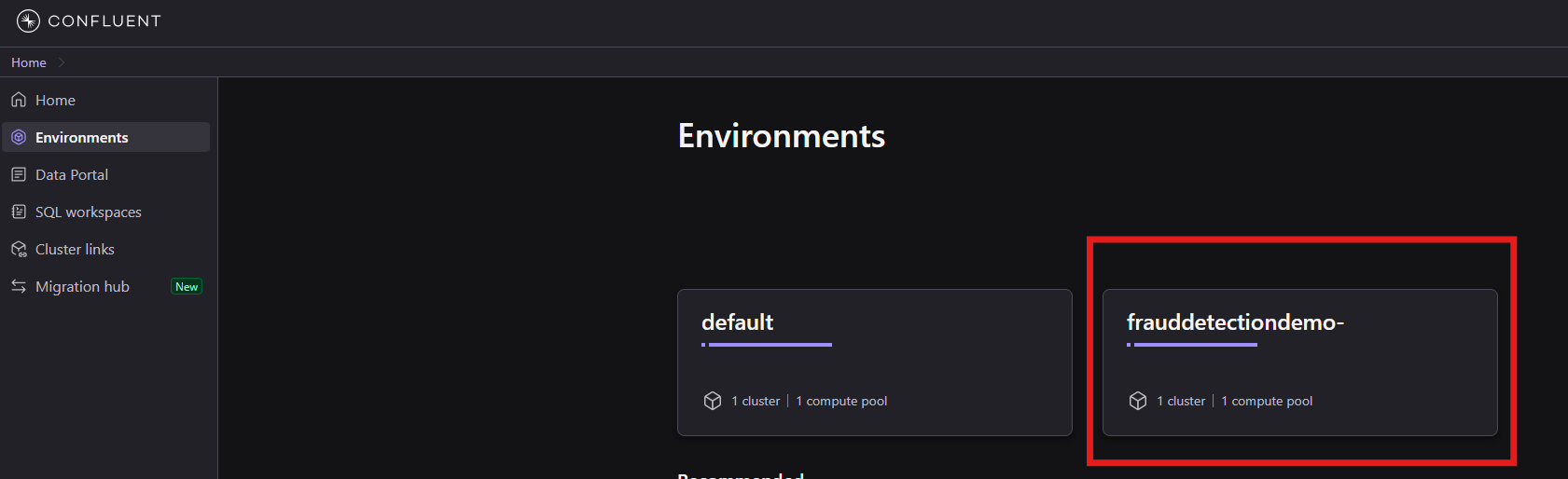 Notice a new environment named frauddetectiondemo-environment-{randomId}