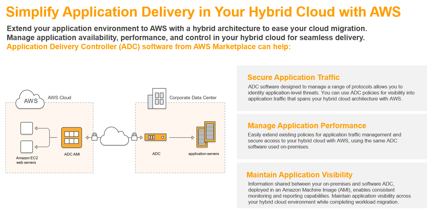 Elastic Load Balancing automatically distributes incoming application traffic across multiple Amazon EC2 instances in the cloud. Extend ELB capabilities with enhanced application visibility and control. Integrate your enterprise network to AWS and deploy the same Layer 4-7 stack on AWS that you use on-premises. Provide fast application deployment, reduced complexity, and consistent policies across AWS and your private data center with Enterprise software solutions.
