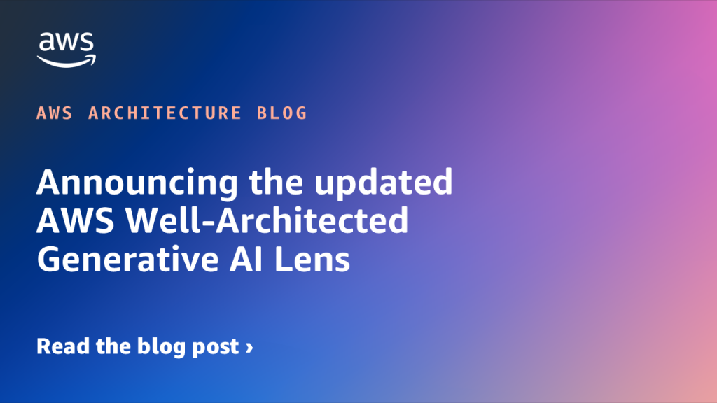 We are delighted to announce an update to the AWS Well-Architected Generative AI Lens. This update features several new sections of the Well-Architected Generative AI Lens, including new best practices, advanced scenario guidance, and improved preambles on responsible AI, data architecture, and agentic workflows.