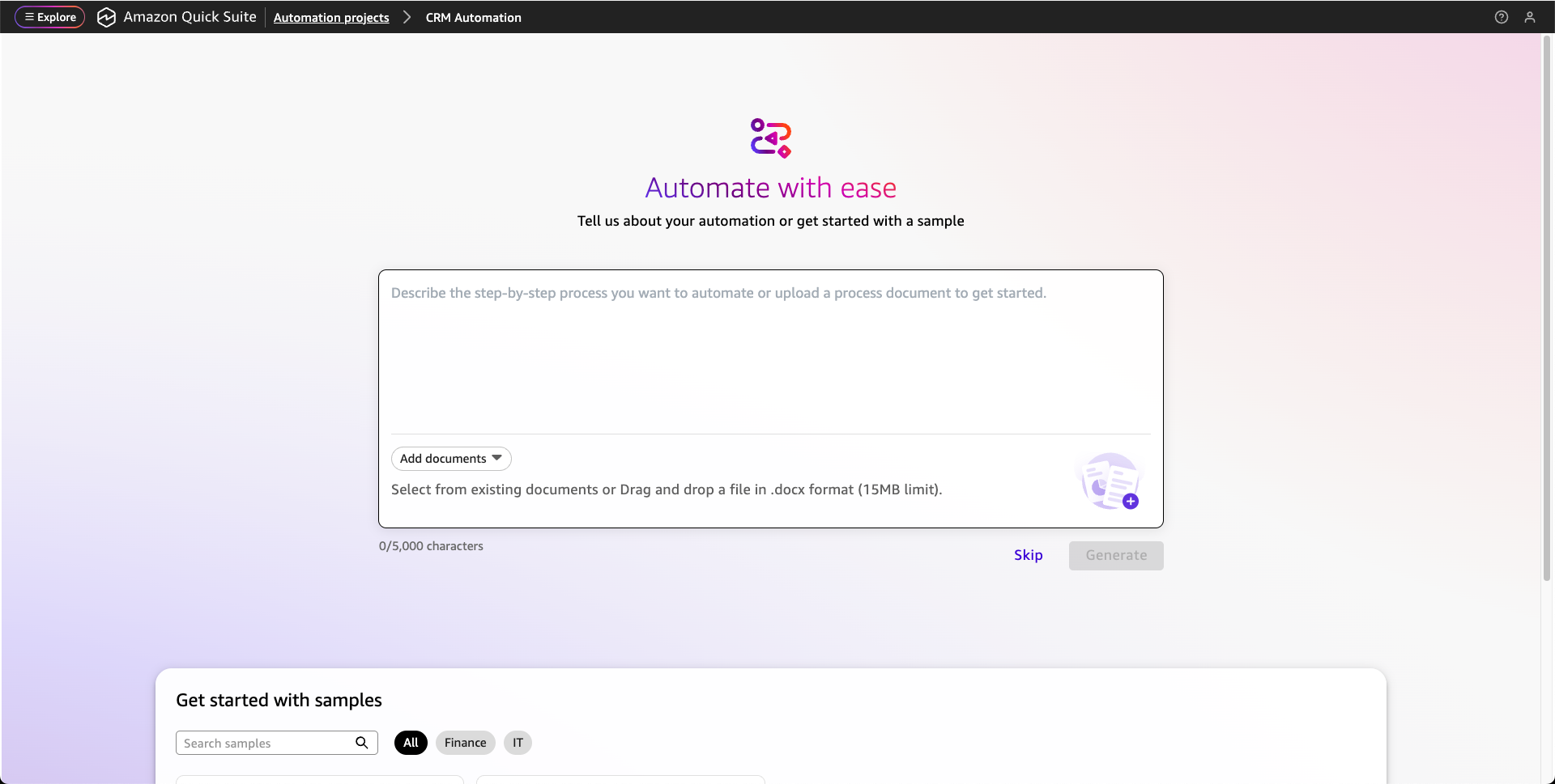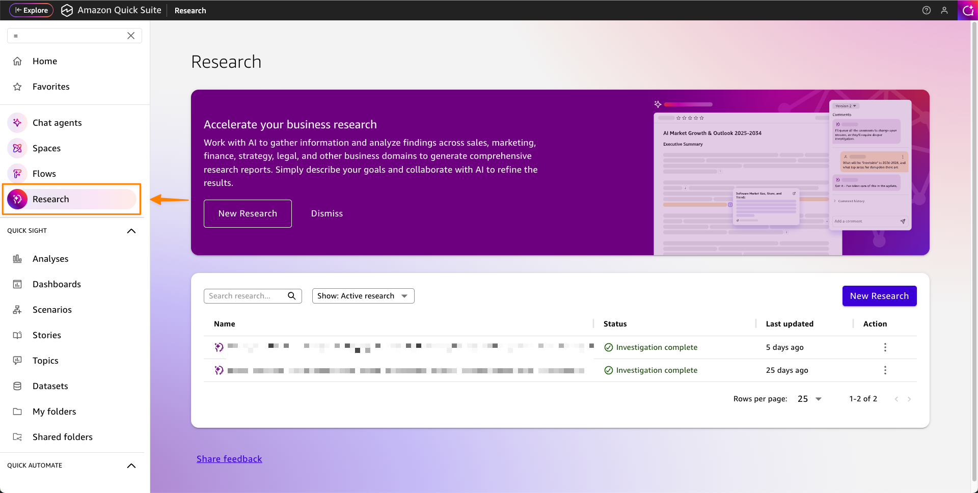 Quick Suite ช่วยให้คุณก้าวผ่านความท้าทายเหล่านี้โดยการรวม Agentic Teammates สำหรับการวิจัย (Research), Business intelligence และการทำระบบอัตโนมัติ (Automation) เข้าไว้ใน Workspace เดียวสำหรับงานในประจำวันของคุณ