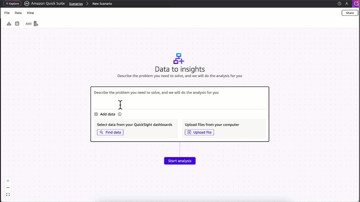 ความสามารถของ Scenarios ทำให้คุณสามารถทำ What-If Analysis โดยการใช้ Prompt ผ่านการแนะนำทีละขั้นตอน ทำให้คุณสามารถค้นคว้า Business Scenarios ต่าง ๆ ที่ซับซ้อนและสรุปผลได้อย่างรวดเร็วอย่างไม่เคยเป็นมาก่อน