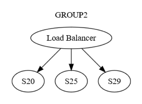 However, that is just the group-level view. There is also machine-to-machine level interaction within each group. For example, GROUP2 might be structured as shown in the following diagram.