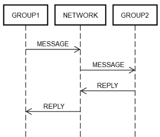 One way or another, some machine within GROUP1 has to put a message on the network, NETWORK, addressed (logically) to GROUP2. Some machine within GROUP2 has to process the request, and so forth. The fact that GROUP1 and GROUP2 are comprised of groups of machines doesn’t change the fundamentals. GROUP1, GROUP2, and NETWORK can still fail independently of each other.
