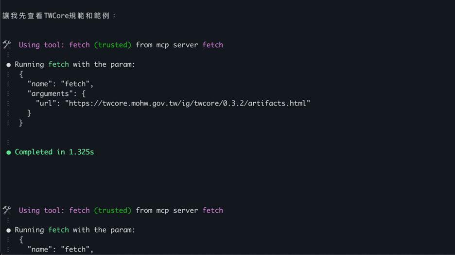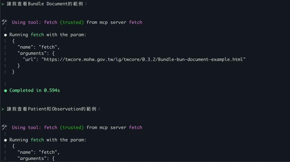 圖四-2:agent會依照資料內容,先閱讀TW Core IG的Bundle範例
